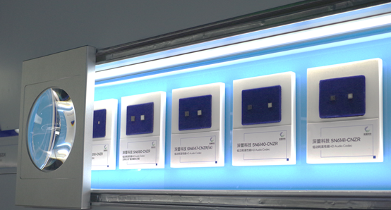 在大灣區(qū)創(chuàng)新科技中心展出的深蕾半導(dǎo)體系列音頻編解碼芯片